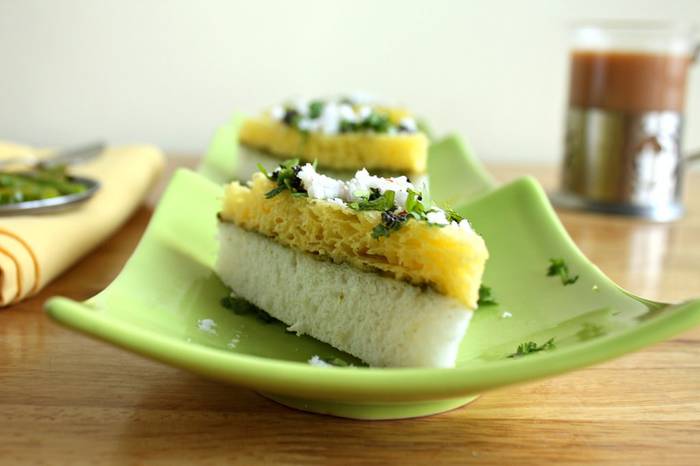 इसके लिए आपको चाहिए 1 कप बेसन, 1.5 कप सूजी, 3 चम्मच शक्कर, 1 चम्मच हरी मिर्च का पेस्ट, 1/2 चम्मच ईनो, 1 चम्मच तेल, 8-10 करी पत्ते, 1 चम्मच सरसों, 1 चम्मच तिल, चुटकी भर हींग, कटा हुआ हरा धनिया.