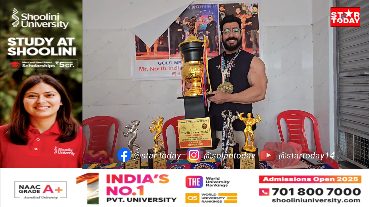 अधिक जानकारी देते हुए गौरव शर्मा ने बताया कि शिमला में आयोजित मिस्टर हिमाचल प्रतियोगिता और मिस्टर नार्थ इण्डिया में गोल्ड मैडल हासिल किया। गौरव ने बताया कि मैन्स फिज़िक और क्लासिक फिज़िक में सिल्वर मैडल हासिल कर ओवर ऑल चैम्पियन की ट्रॉफी हासिल की। उन्होंने कहा कि वह अपनी उपलब्धि पर बेहद खुश है।वह आज से ही और बेहतर करने की तरफ कदम बढ़ाएंगे। गौरव ने बताया कि बॉडीबिल्डिंग एक आर्ट है और यह खिलाड़ी पर निर्भर करता है कि वह अपनी बॉडी को किस तरह का बनाना चाहता है। बाइट गौरव शर्मा