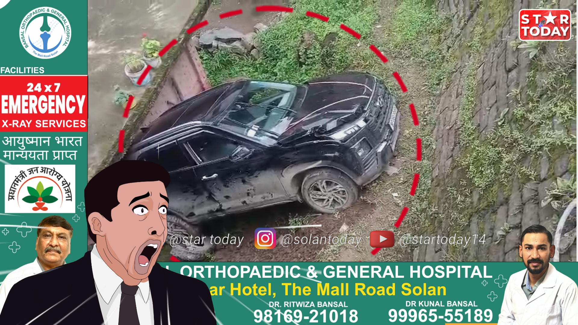 सोलन में देर रात सड़क हादसा – नशे में धुत युवकों की कार खाई में गिरी, पुलिस कर रही जांच