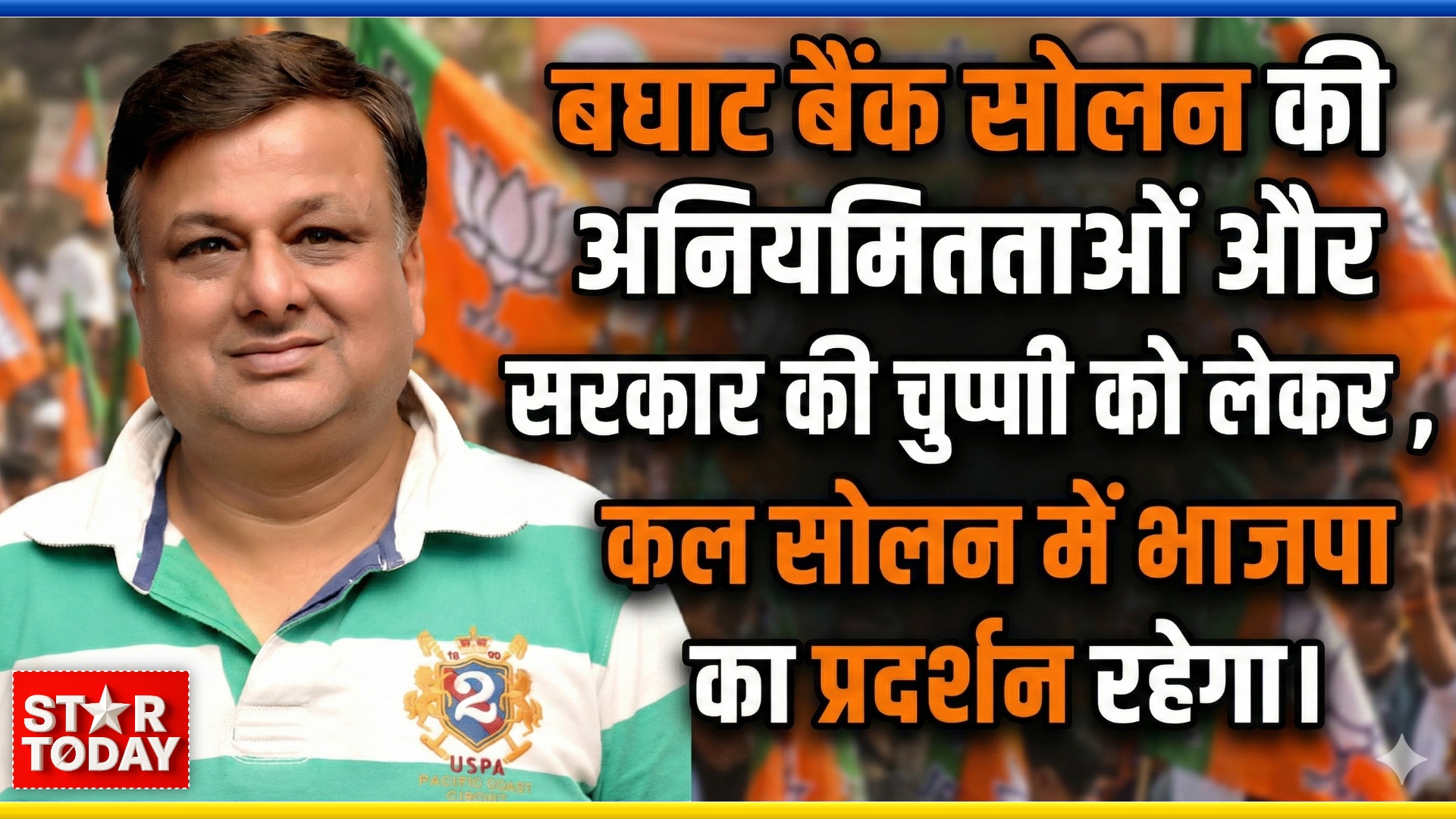सोलन: बघाट बैंक सोलन में सामने आई वित्तीय अनियमितताओं को लेकर भाजपा सोलन शहरी मंडल कल सांकेतिक धरना-प्रदर्शन करेगा। यह जानकारी भाजपा शहरी मंडल अध्यक्ष शैलेन्द्र गुप्ता ने दी। उन्होंने कहा कि बैंक से जुड़े मामलों पर लगातार गंभीर सवाल उठ रहे हैं, लेकिन सरकार अब तक चुप्पी साधे बैठी है, जिससे उपभोक्ताओं और आम जनता में रोष बढ़ता जा रहा है।