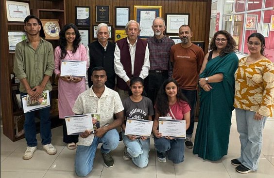 कुलाधिपति प्रो. पी.के. खोसला ने विजेताओं को प्रमाण पत्र प्रदान किए और उन्हें अपनी व्यक्तिगत रूप से लिखित और हस्ताक्षरित पुस्तक, “ट्रिस्ट्स विद कर्मा” भेंट की।