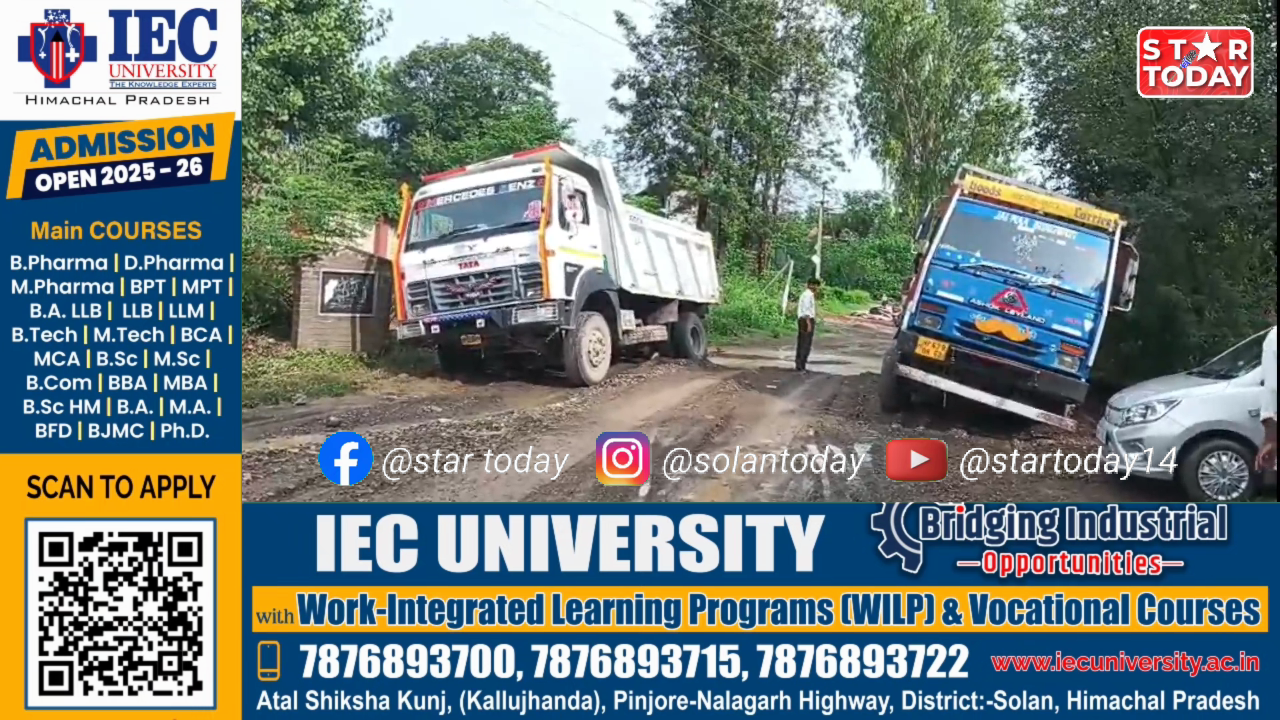 कुनिहार शिमला सड़क मार्ग पर भारी बारिश में आए मलबे में दो ट्रक फंस  गए। यह घटना राधा स्वामी सत्संग व्यास भवन के पास की है।